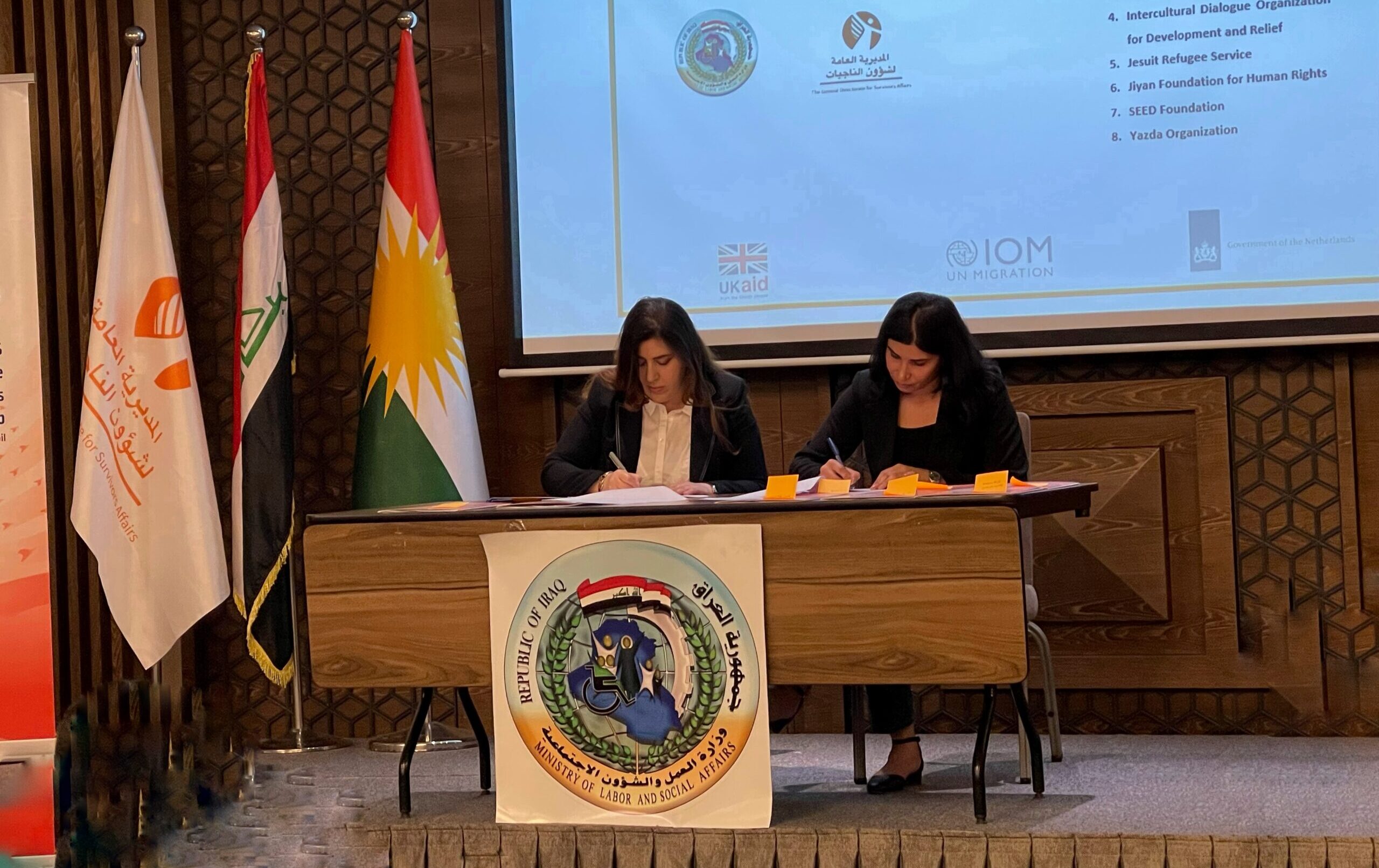 Today the Free Yezidi Foundation and seven other non-governmental organizations were selected to sign agreements for mental health and psycho-social support (MHPSS) referrals with Iraq’s Directorate for Survivors’ Affairs. The Directorate was formed to implement the Yezidi Survivors’ Law that was passed in Iraq’s Parliament in 2021.