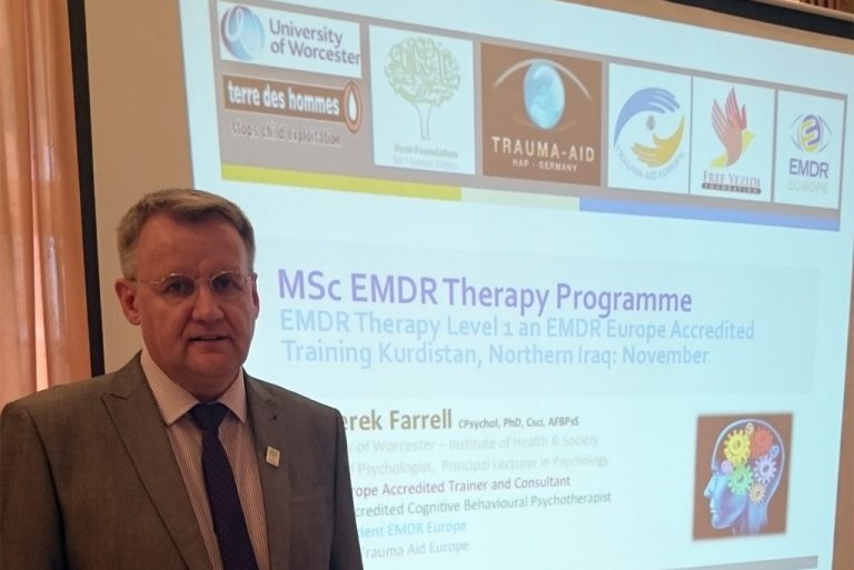 Derek Farrell conducting seminar for Jiyan Foundation practitioners The Free Yezidi Foundation is among five collaborative partners in a high-level